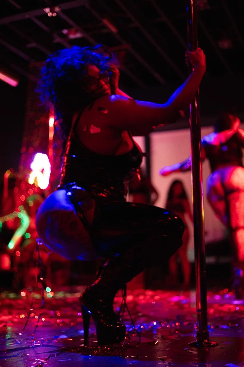 Thorne is a Denver based pole-burlesque performer and proud stripper! Having learned most of what she knows working the clubs, Thorne has a deeply seductive and intoxicating flow on and off the pole. Blending tricks, musicality and flexibility, Thorne creates an experience. With almost 5 years of experience on the pole, Thorne is passionate about cultivating a safe and inclusive space where students can explore self expression through sultry and seductive movements.